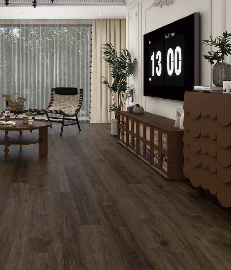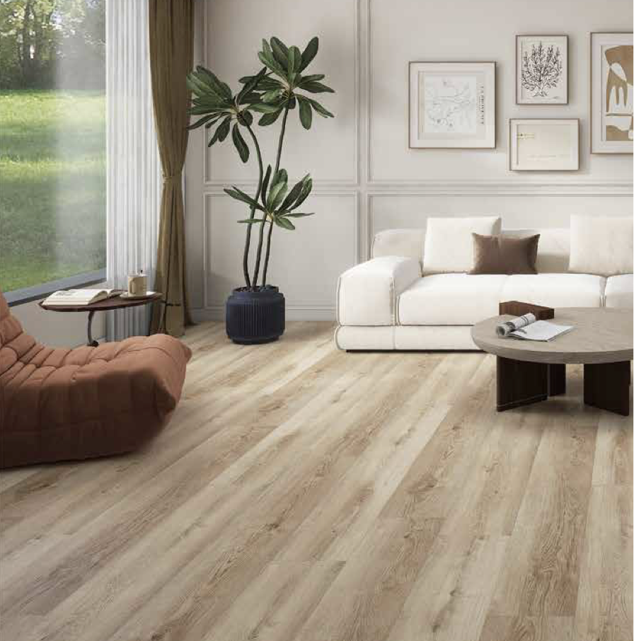 VASA™ SPC Flooring is a new type of environmentally friendly flooring material. Its main raw materials are natural stone powder (calcium carbonate) and thermoplastic PVC polymer materials. This product not only combines the advantages of existing flooring options but also demonstrates better waterproof, moisture- proof, abrasion-resistant, and dimensional stability properties. It has no formaldehyde added and high fire resistance. Therefore, it can be safely used in most indoor areas, such as bedrooms, living and dining rooms, bathrooms, laundry rooms, and kitchens. The stone plastic flooring creates a quiet and warm environment by adding soundproof underlay, eliminating the shortcomings of laminate flooring. The stone plastic flooring uses a locking installation method, which does not require glue. The seams are tight, preventing glue contamination.